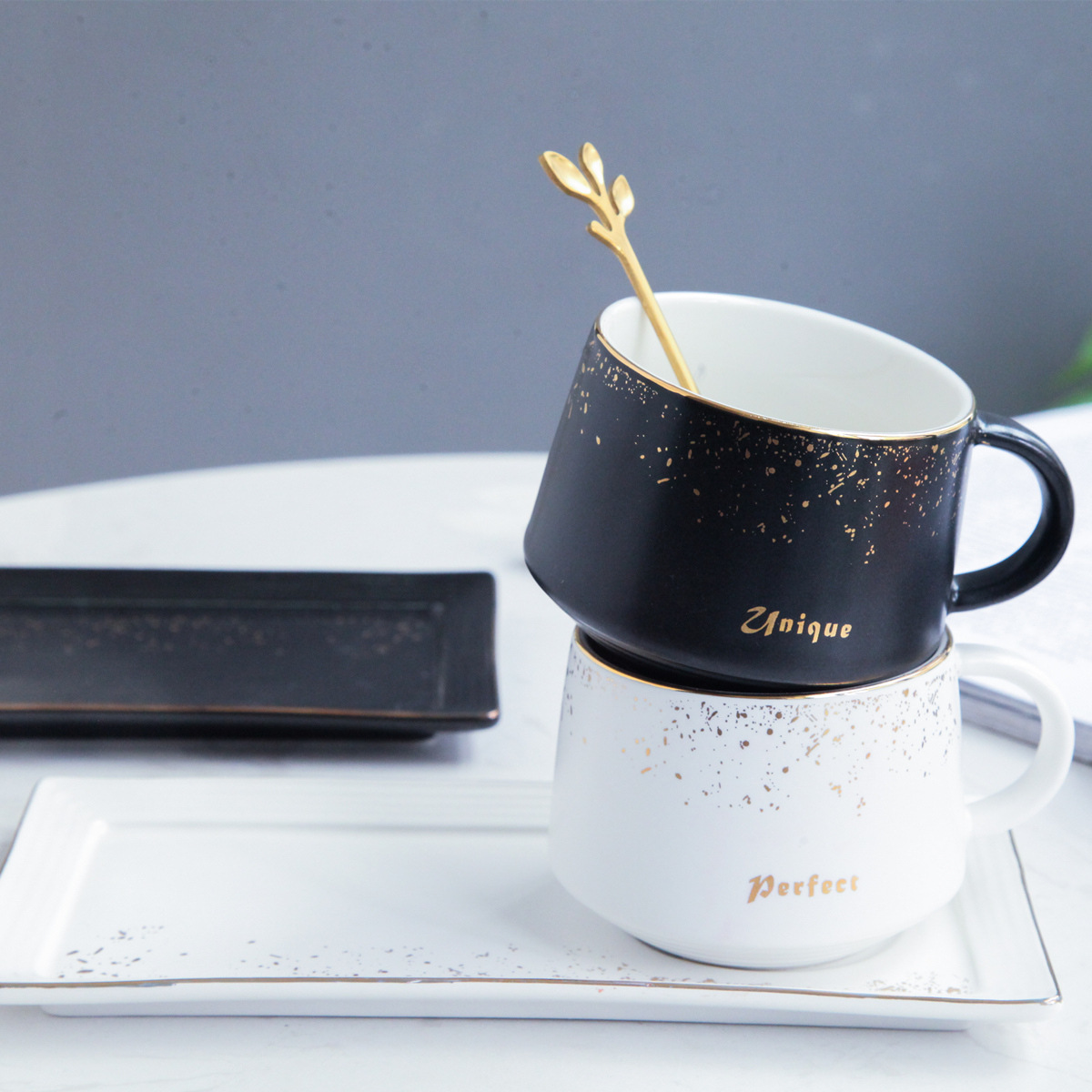 All Star Gold Wave Dot Ceramic Coffee cup Black and White Coffee cup Disc Business Office Household Water Cup Customizable Gift