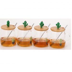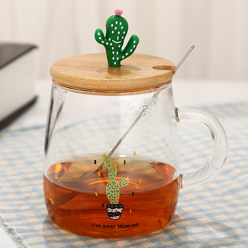 Cactus Glass Cup High Borosilicate Glass 3D Bonsai Cup Creative Wooden Cap Gift Cartoon Cup