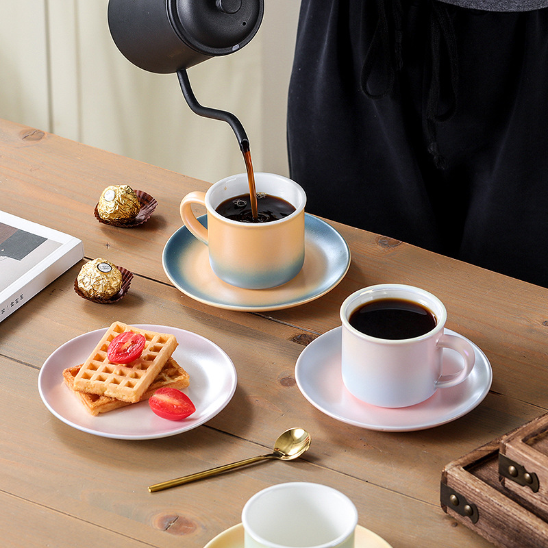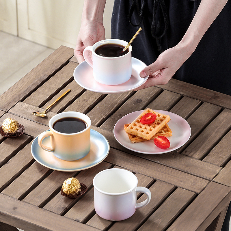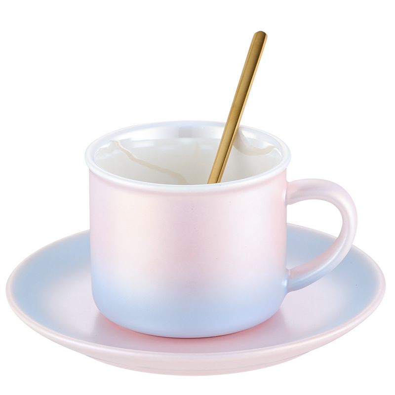 Crystal plated Coffee cup ceramic pearl cup Colorful Nordic cup lovers cup Makron color gradient gift cup