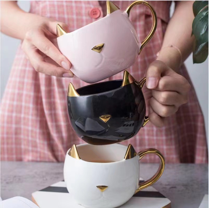 Easter gift cups creative cat ceramic cups spot wholesale Mark Cup gold handle 3D modeling cups.