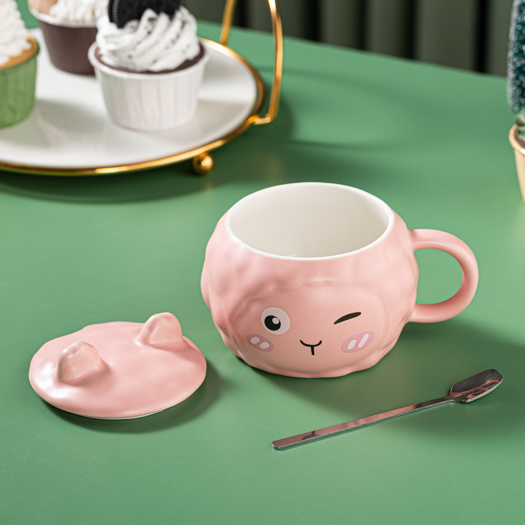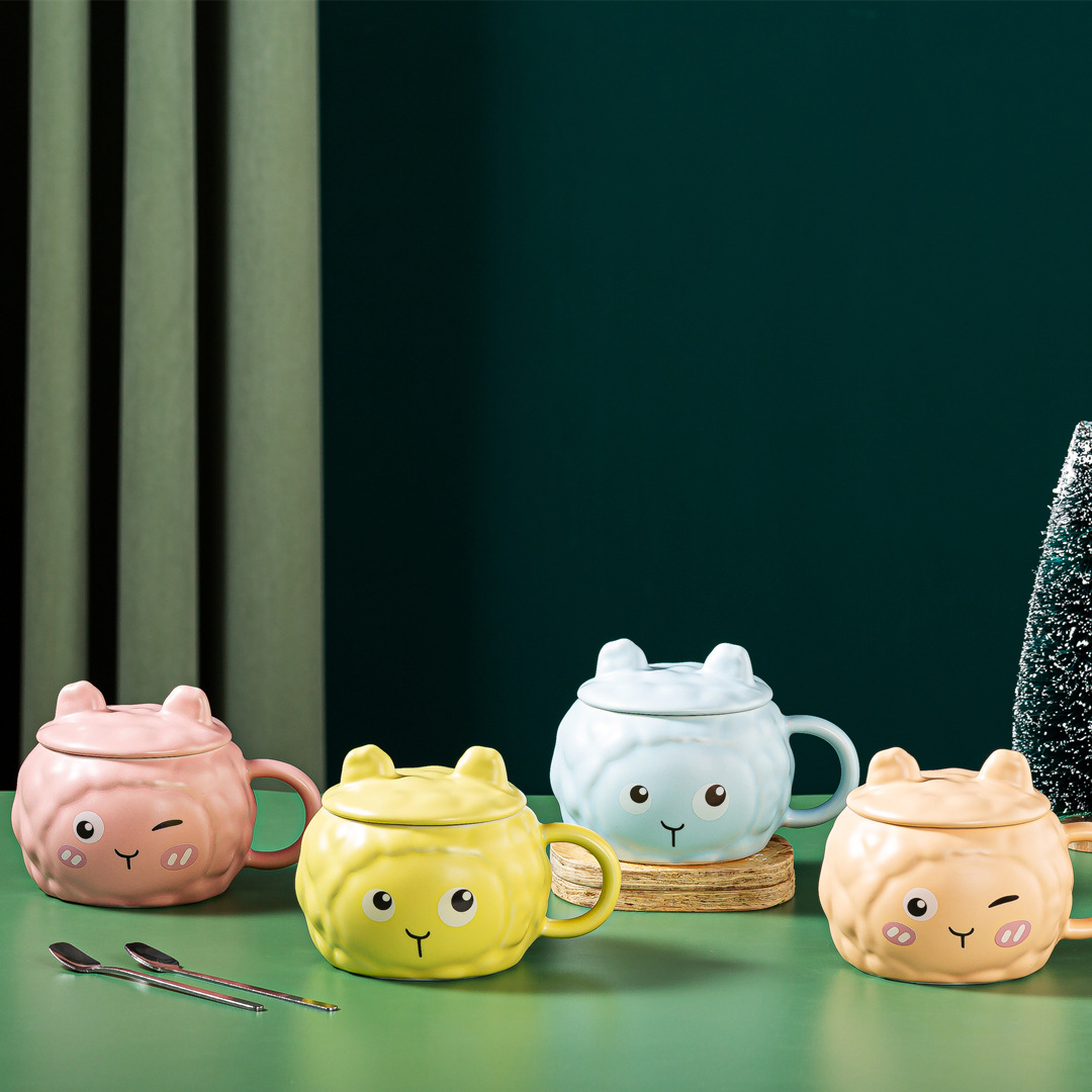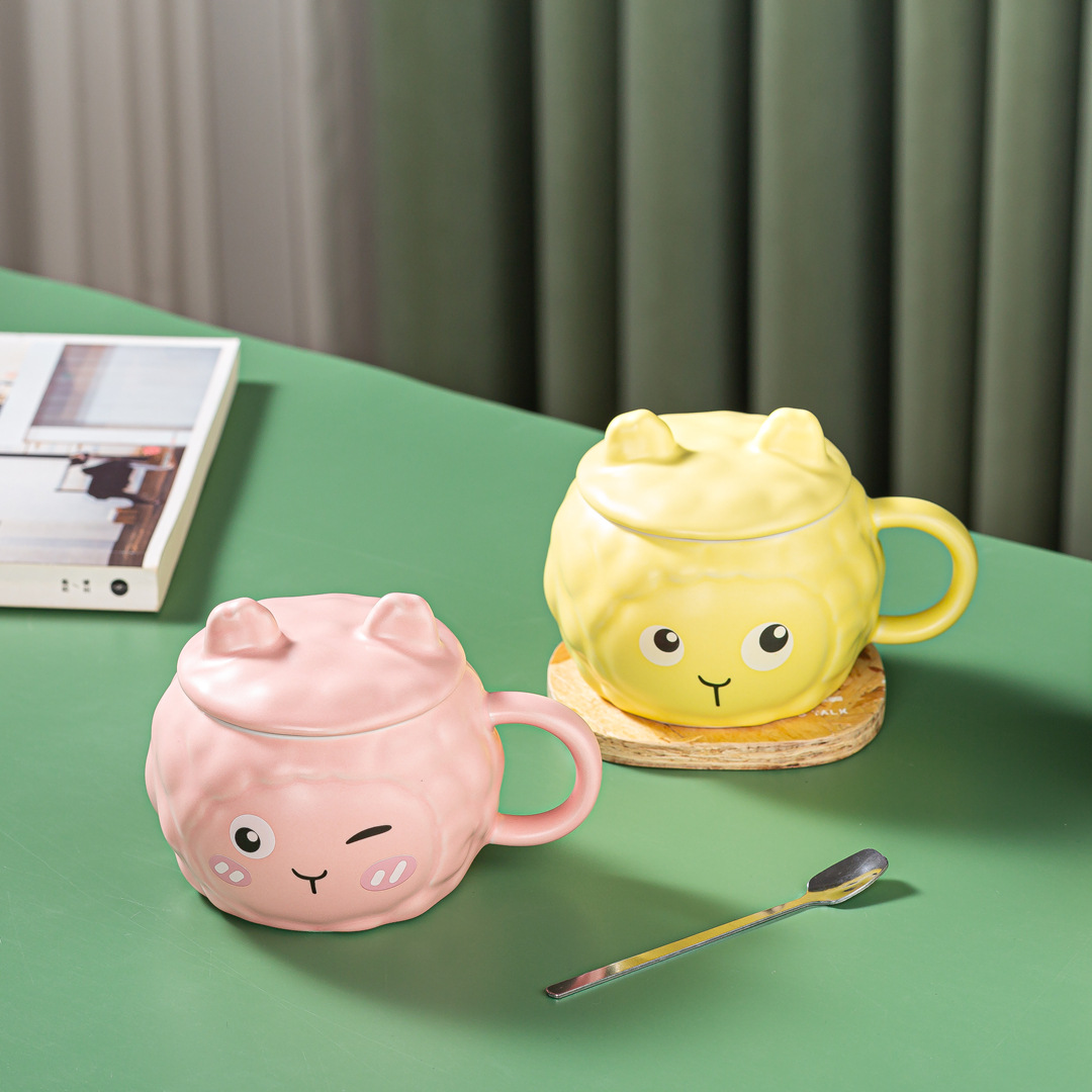 Lovol Ceramic Cute Cartoon Ceramic Cup Creative Sheep Breakfast Cup Makron Animal Shape Cup