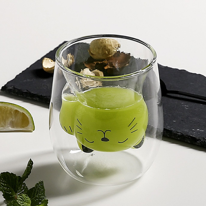 a whimsical and trendy addition to your collection! This double glass cup is not only adorable but also functional, making it the perfect companion for your daily coffee or milk indulgence.