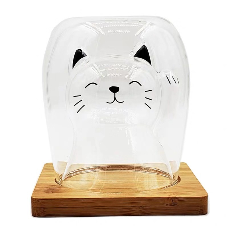 Online celebrity double glass cute cartoon lucky cat claw cup bear cup student gift cup coffee milk cup.